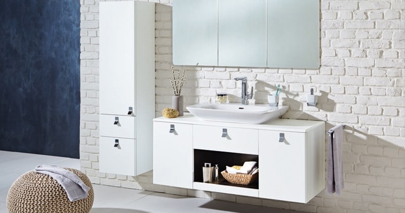 Passende Sideboards, Hochschränke und ein verspiegeltes Regal mit seitlichen Fächern komplettieren die harmonische Serie EDITION 11 ART von KEUCO.